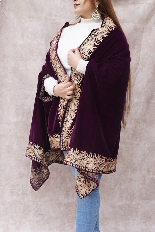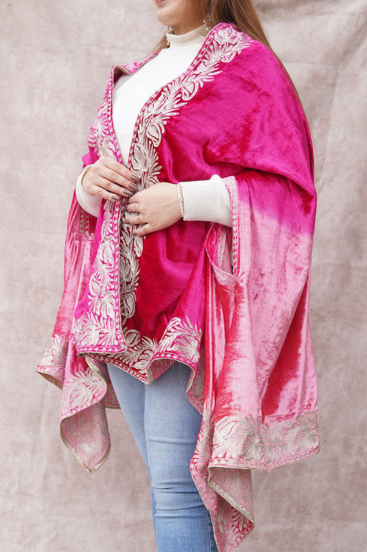 Pink Double Shade Velvet Cape with Zari Embroidery