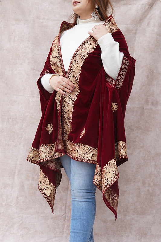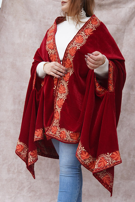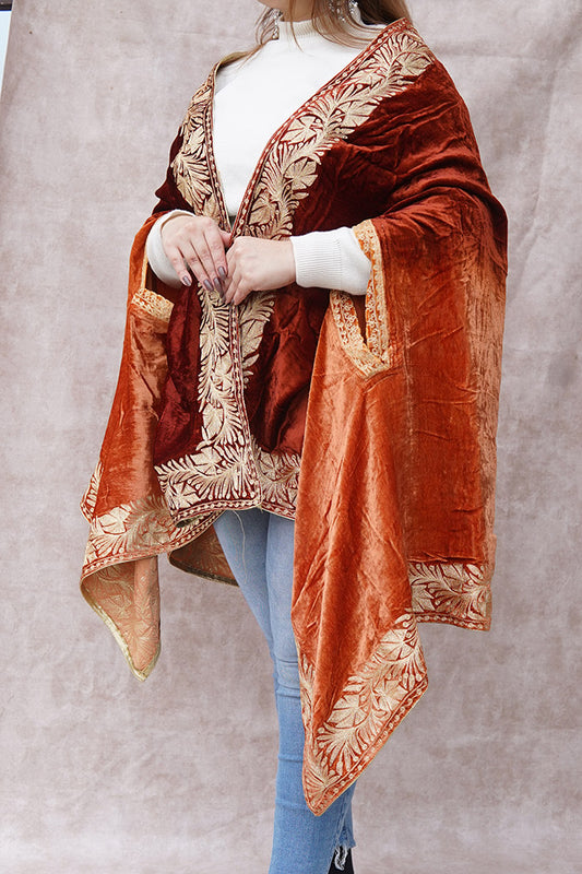 Orange Red Double Shade Velvet Cape with Zari Embroidery