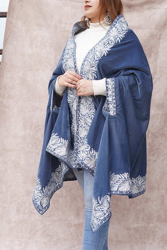 Blue Double Shade Velvet Cape with Zari Embroidery