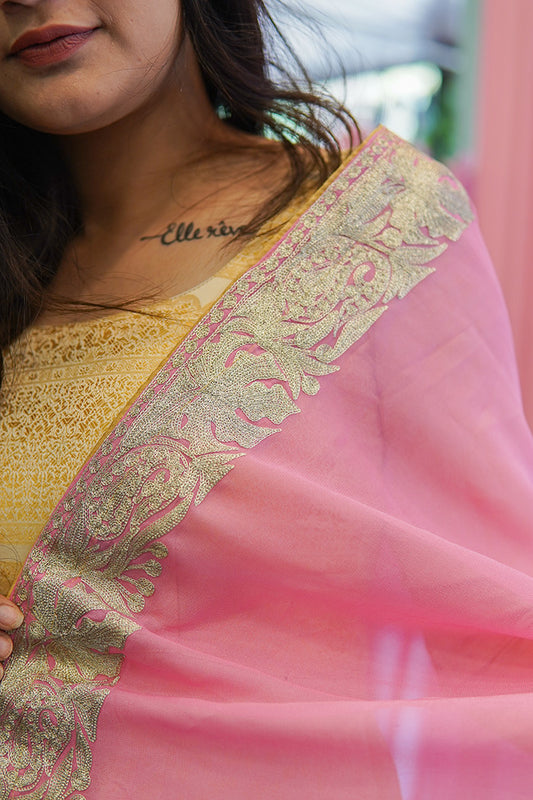 Kashmiri Pink Georgette Cape with Zari Embroidery