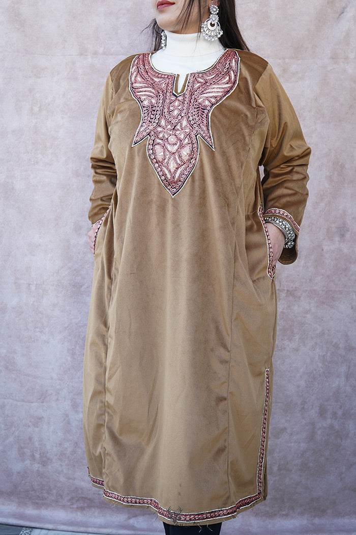 Copper Velvet Phiran with Puff Tilla Embroidery