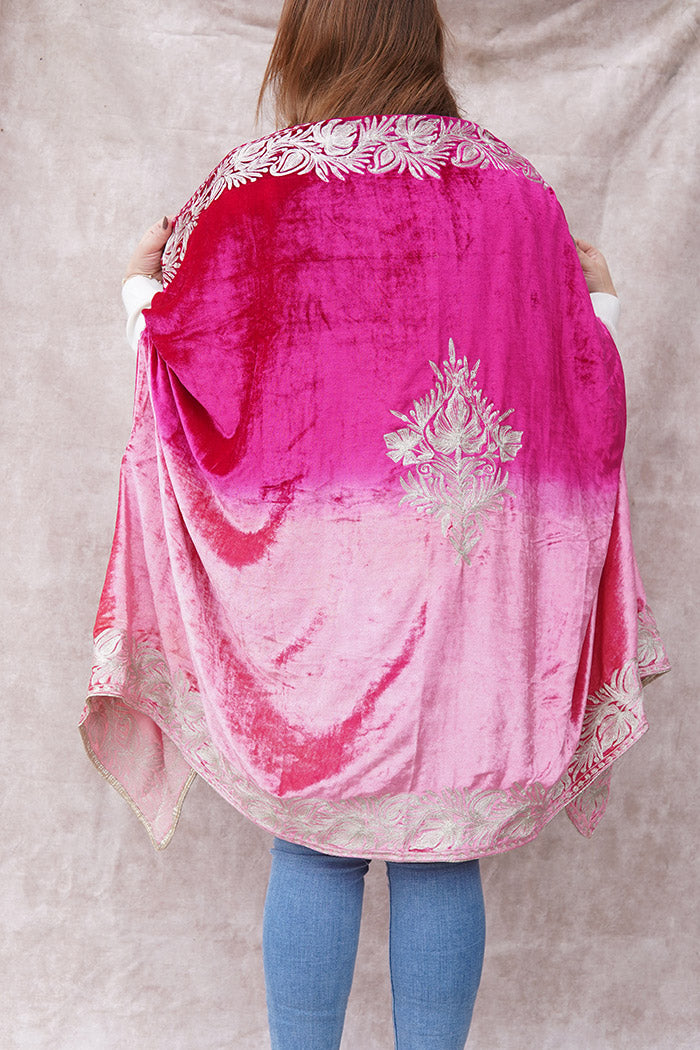 Pink Double Shade Velvet Cape with Zari Embroidery
